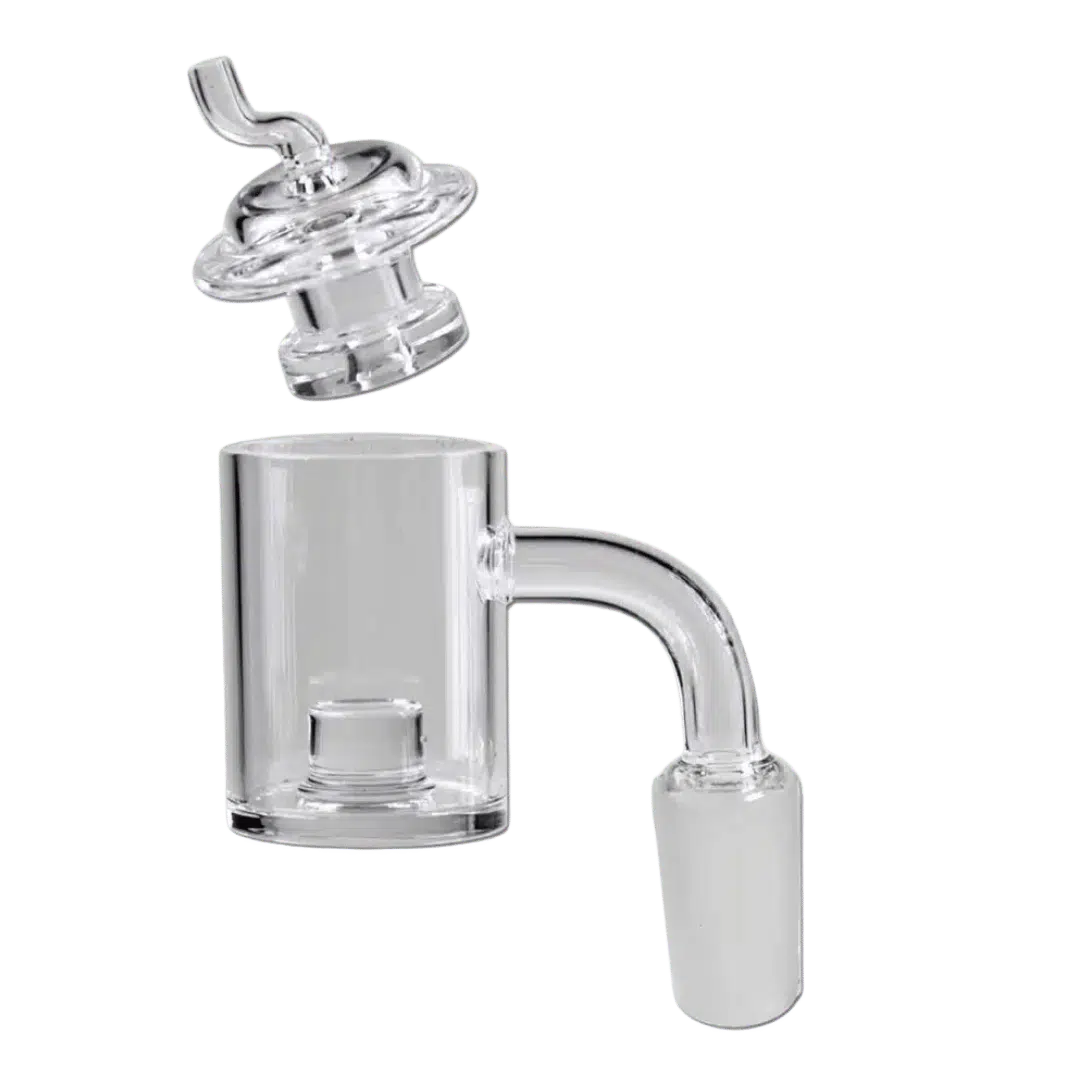 Die mitgelieferte Carb Cap verbessert den Luftstrom und erzeugt einen kleineren Luftkanal, sodass der Dampf besser in der Kammer des Bangers gehalten wird. Dies bedeutet kontrolliertere Hitze, eine bessere Ausnutzung deines Konzentrats und weniger Verschwendung.