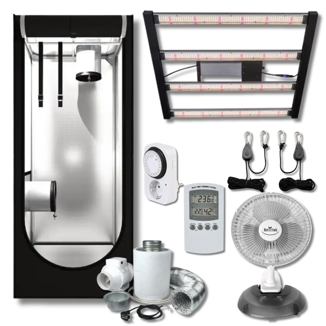 Ein komplettes Growkit, das alles enthält, was Sie benötigen, um ein optimales Wachstumsumfeld für Ihre Pflanzen zu schaffen und damit ein erfolgreiches Wachstum zu gewährleisten.