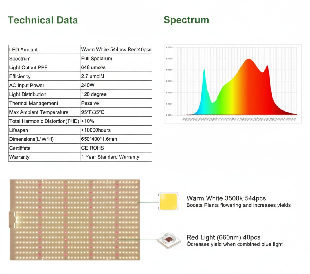 Vollspektrum – Optimale Lichtmenge und Farbmischung für sowohl Wachstum als auch Blüte.