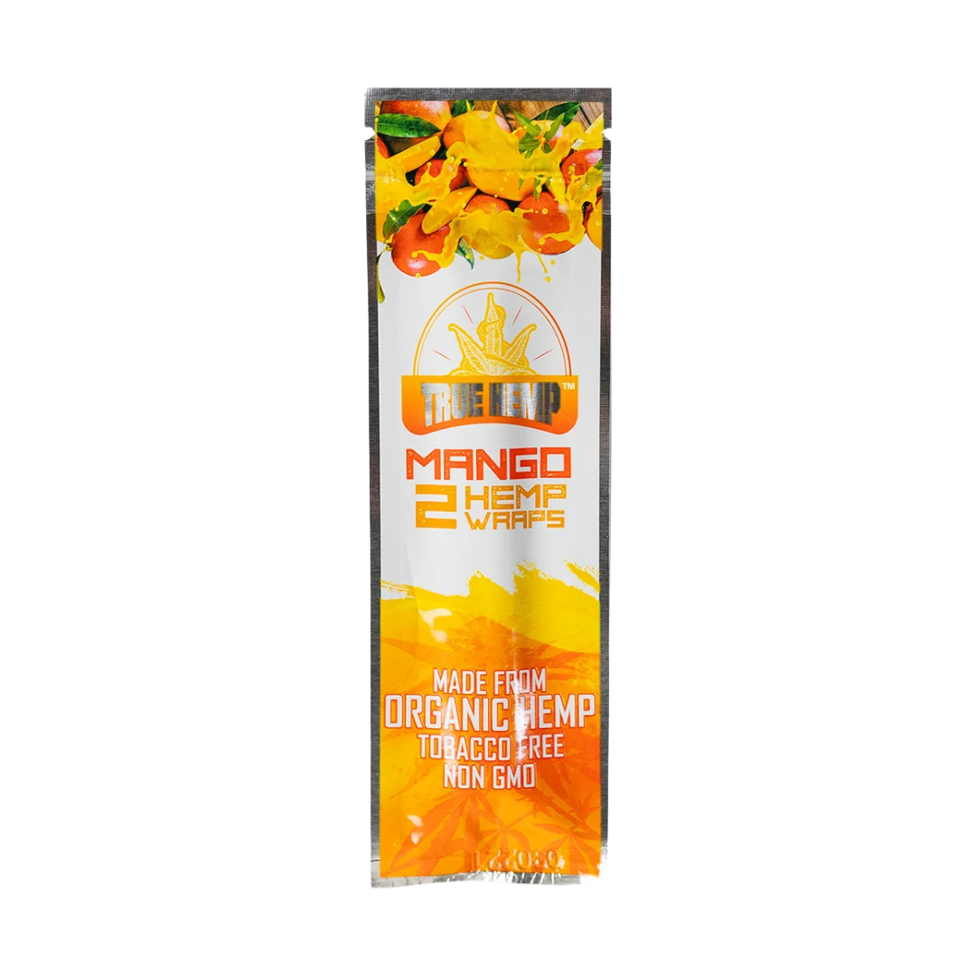 True Hemps Blunts ähneln einem Blunt, der Unterschied besteht jedoch darin, dass ein normaler Blunt aus Tabak besteht und dieser zu 100 % tabakfrei ist. True Hemp Blunt Wraps Mango besteht aus 100 % Hanf und hat einen leckeren süßen Mango-Geschmack und -Duft.
